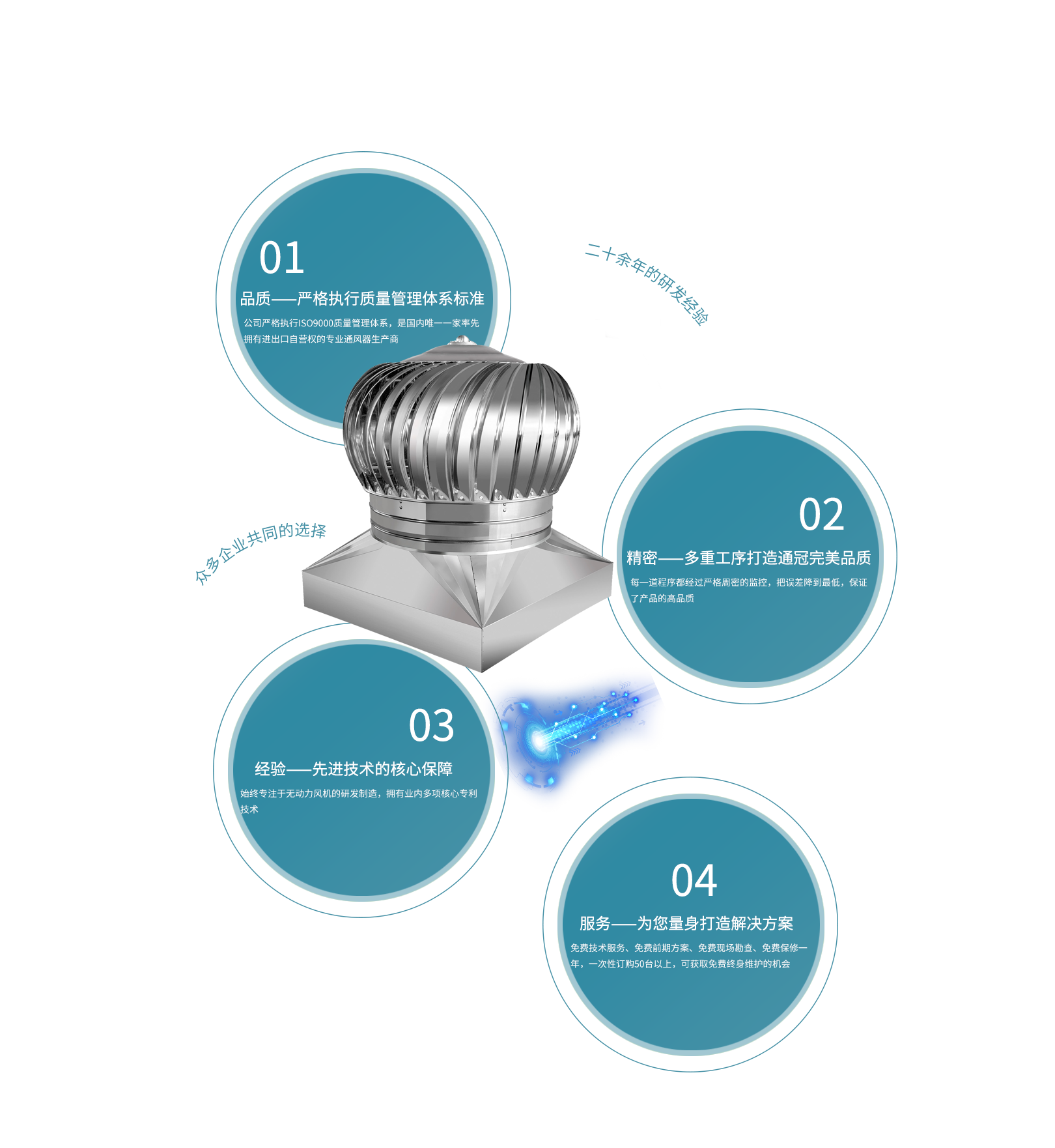 天長市通冠無動力風機有限公司,是集研發(fā)、生產(chǎn)、銷售于一體的,專業(yè)無動力風機生產(chǎn)廠家。公司坐落于205國道南京與揚州之間,位于省級高新經(jīng)濟技術(shù)工業(yè)園,交通便利。“通冠”有著一支技術(shù)精湛、服務(wù)非凡的隊伍。所有一線技術(shù)工人技術(shù)熟練、質(zhì)量意識強。公司嚴格執(zhí)行ISO9000質(zhì)量管理體系,一貫貫徹“以質(zhì)量為生命”、“以信譽為根本”、“以服務(wù)為基礎(chǔ)”的理念···[查看詳細]